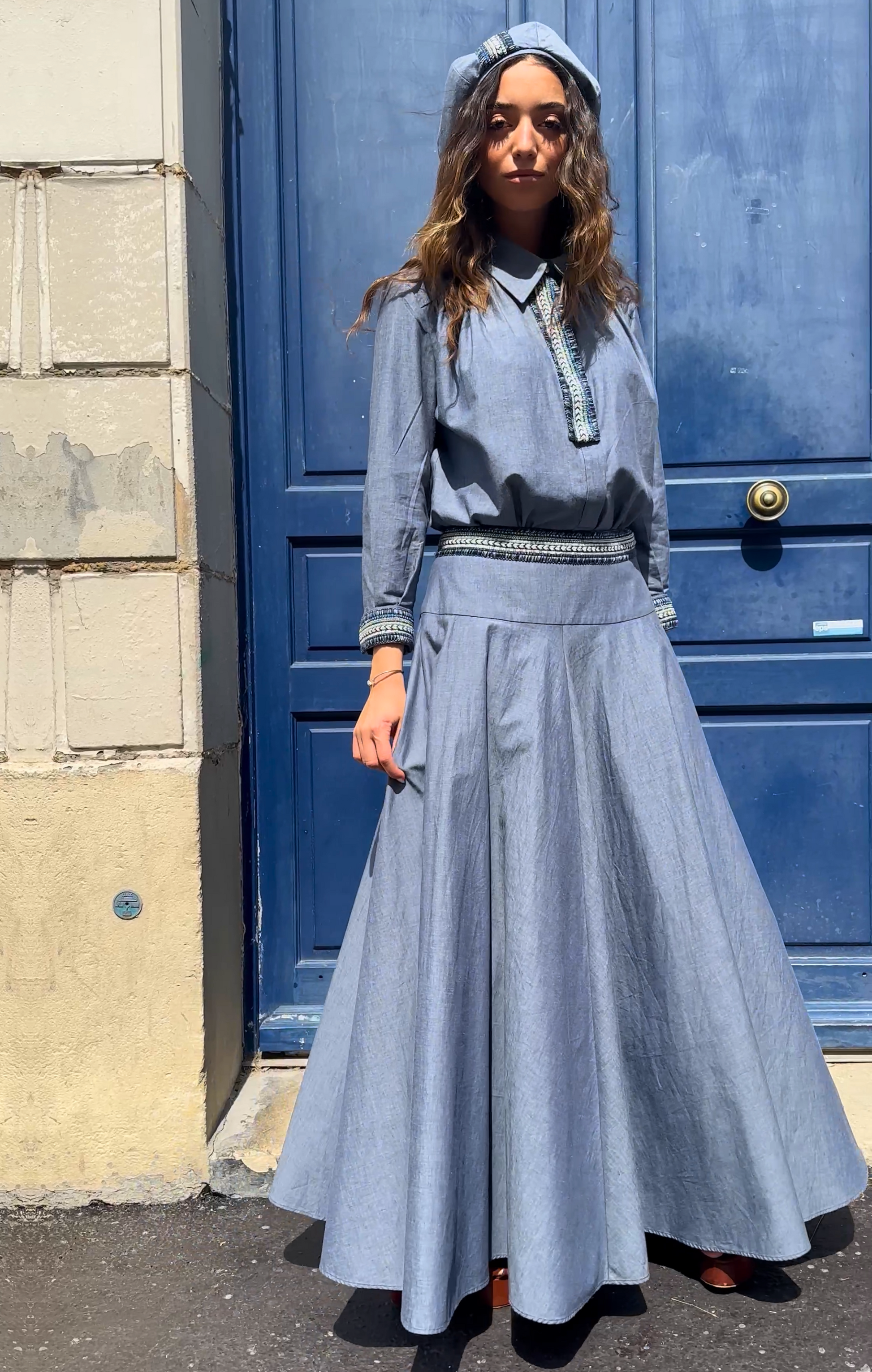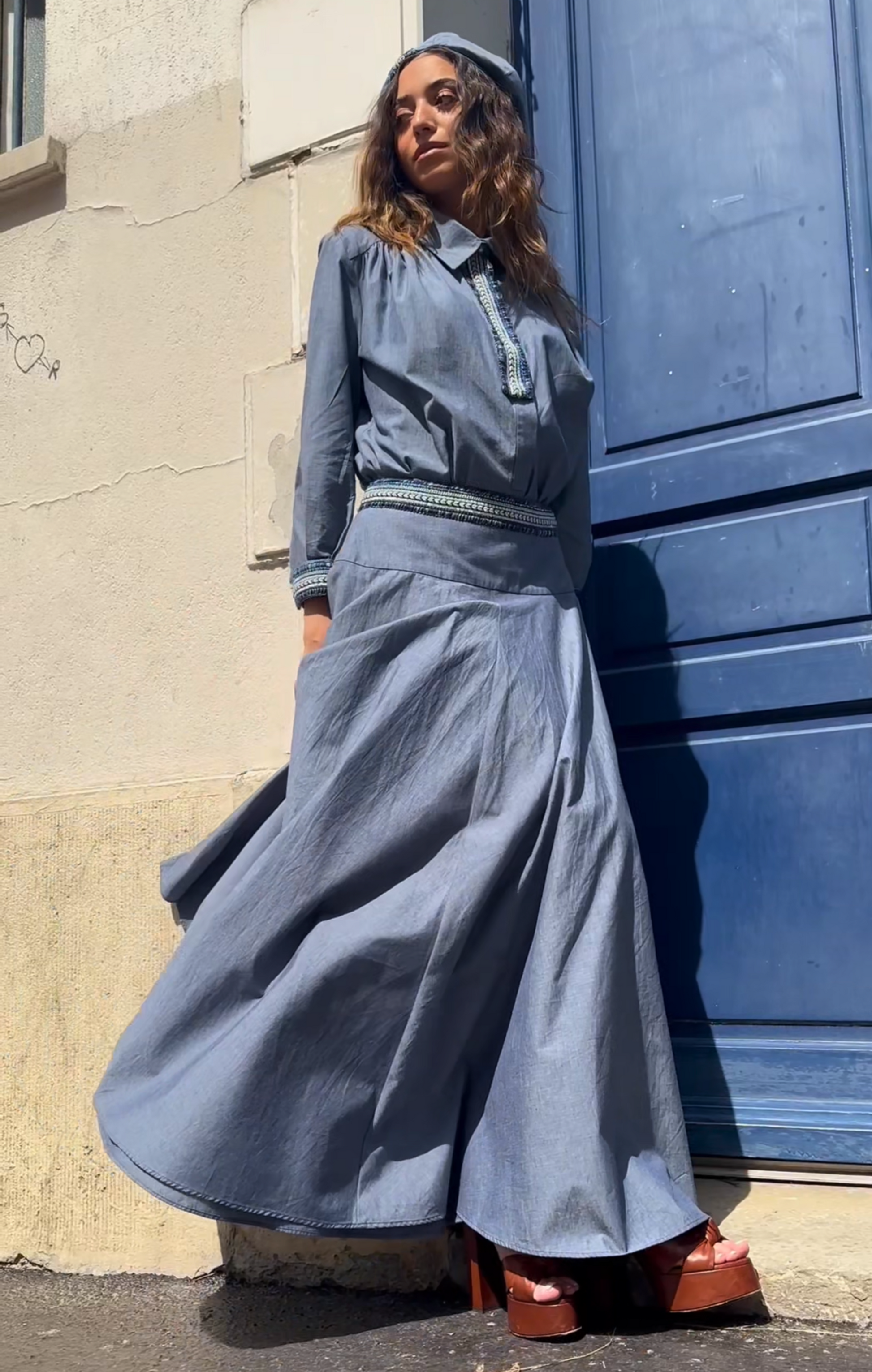 Craquez pour notre jupe KIM au volume maxi. La taille est marquée par une ceinture bijoux. Sa longueur maxi vous donnera une allure élancée et féminine.