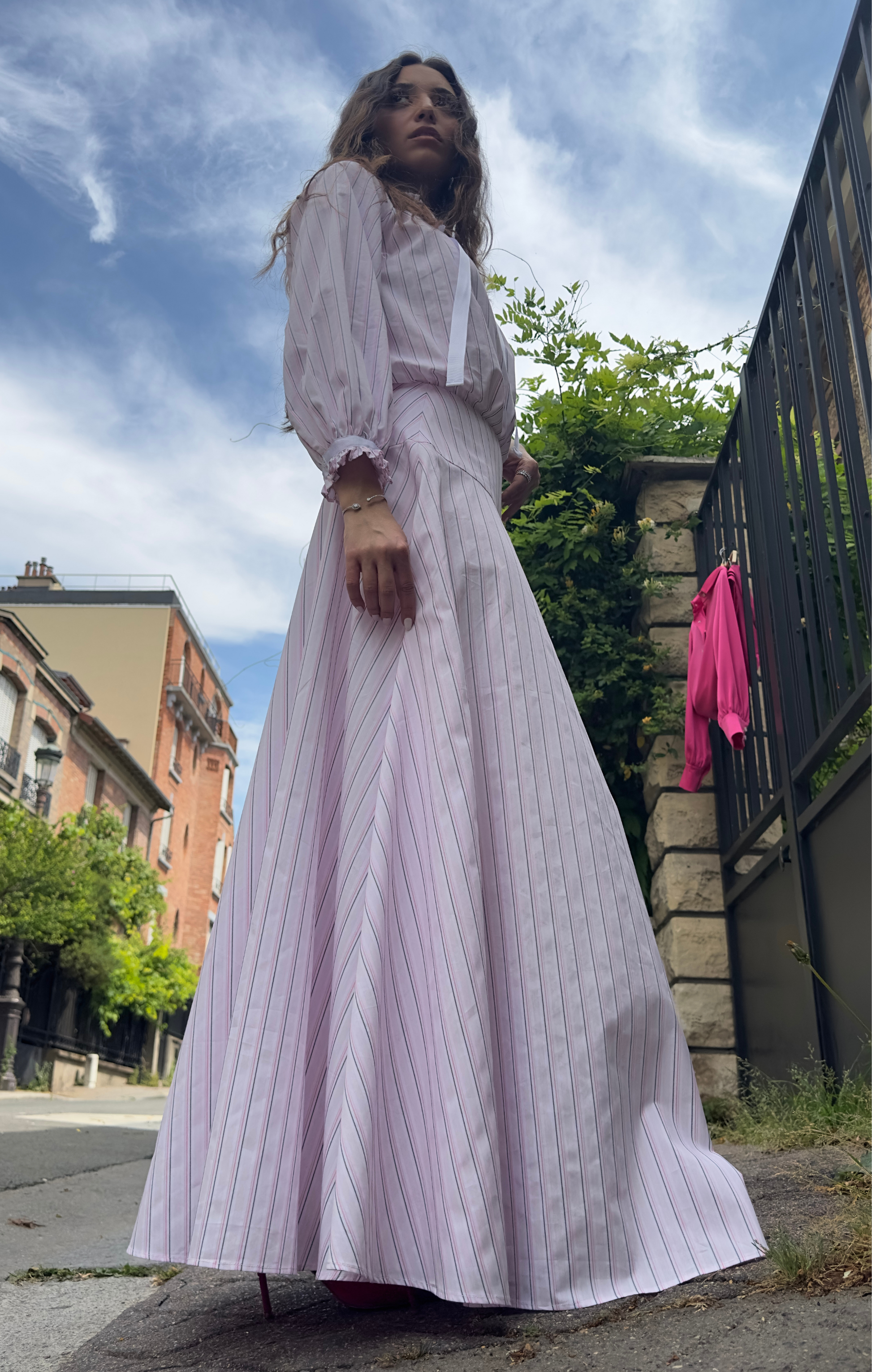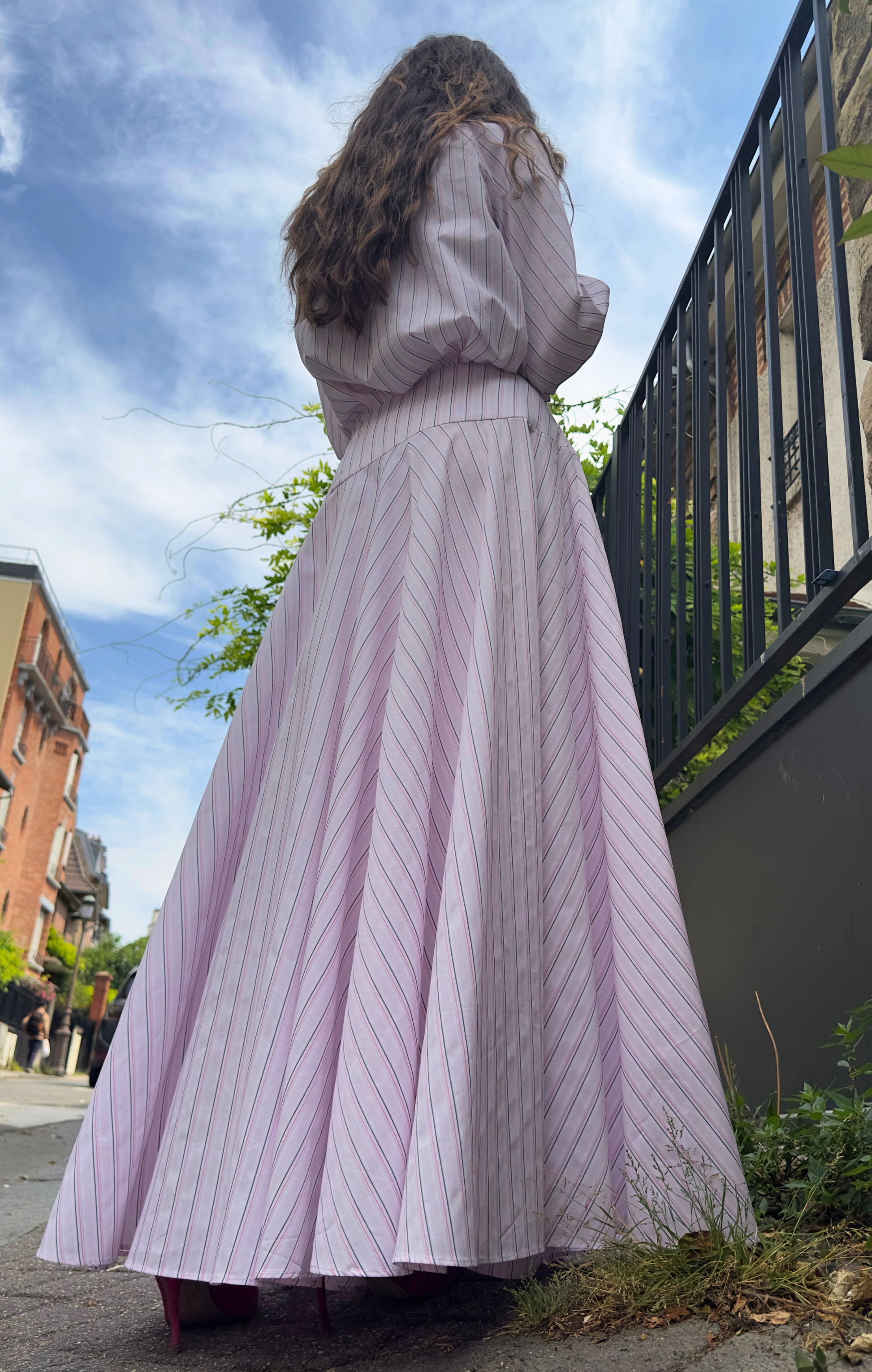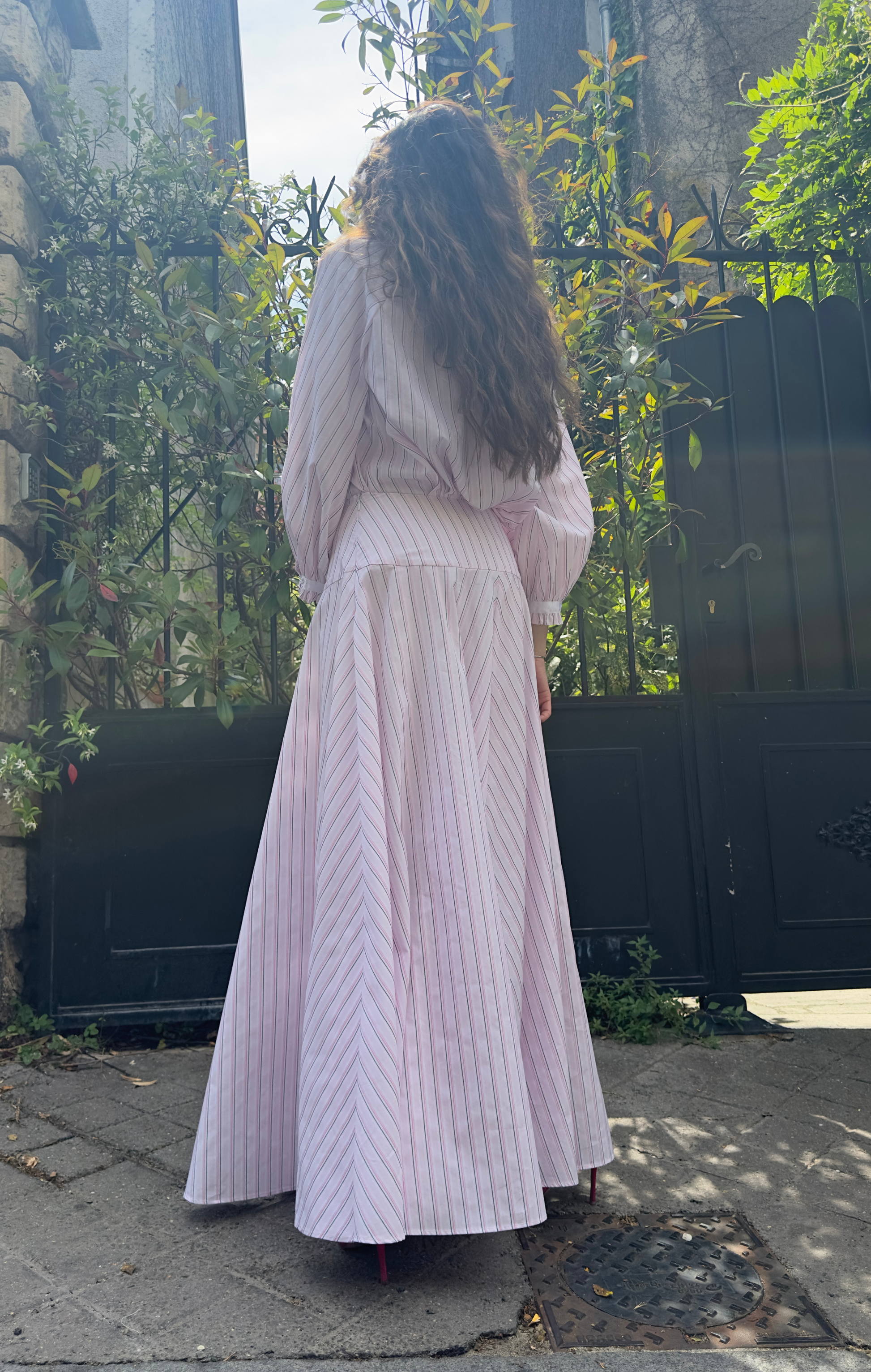 ◆ Jupe rayée rose & blanche avec taille marquée