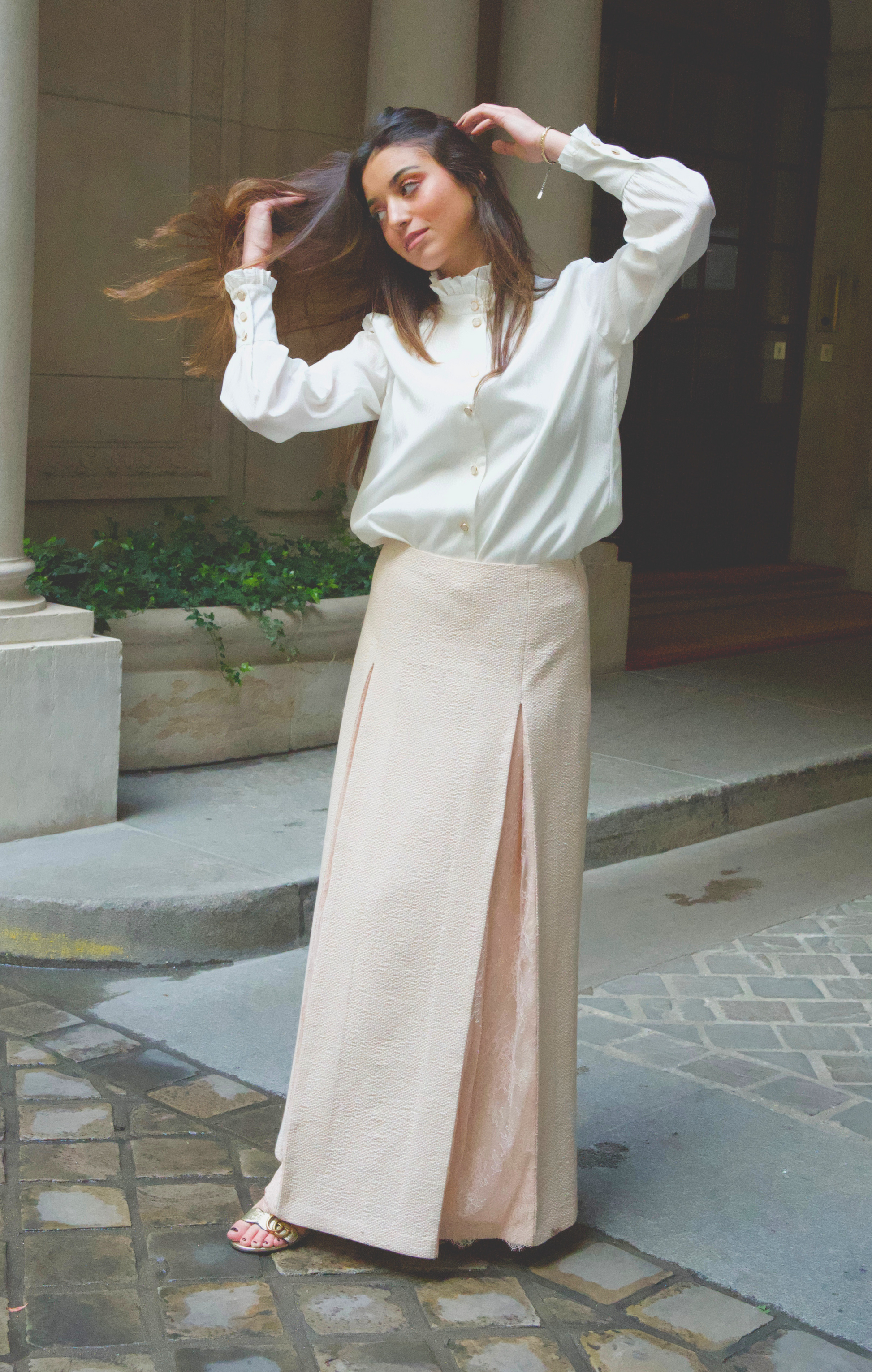 La jupe MADY présente un jeu de plis en dentelle pour vous donner une allure gracieuse et féminine.